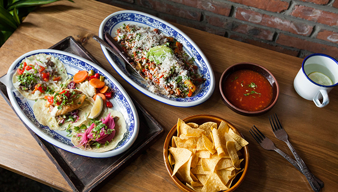 Menu staples like the legendary calamares fritos are joined by brunch-only items like a Taco Bar take on eggs Benedict, served on sweet rolls with slow-cooked carnitas and green chilli hollandaise. Washed down with pitchers of the house paloma or white wine sangria , it makes for a boozy good time and a damn fine meal without the pomp or price tag of bubbles or buffet. Save it for a sunny day and take in some rays, along with way too many Micheladas , on the terrace.